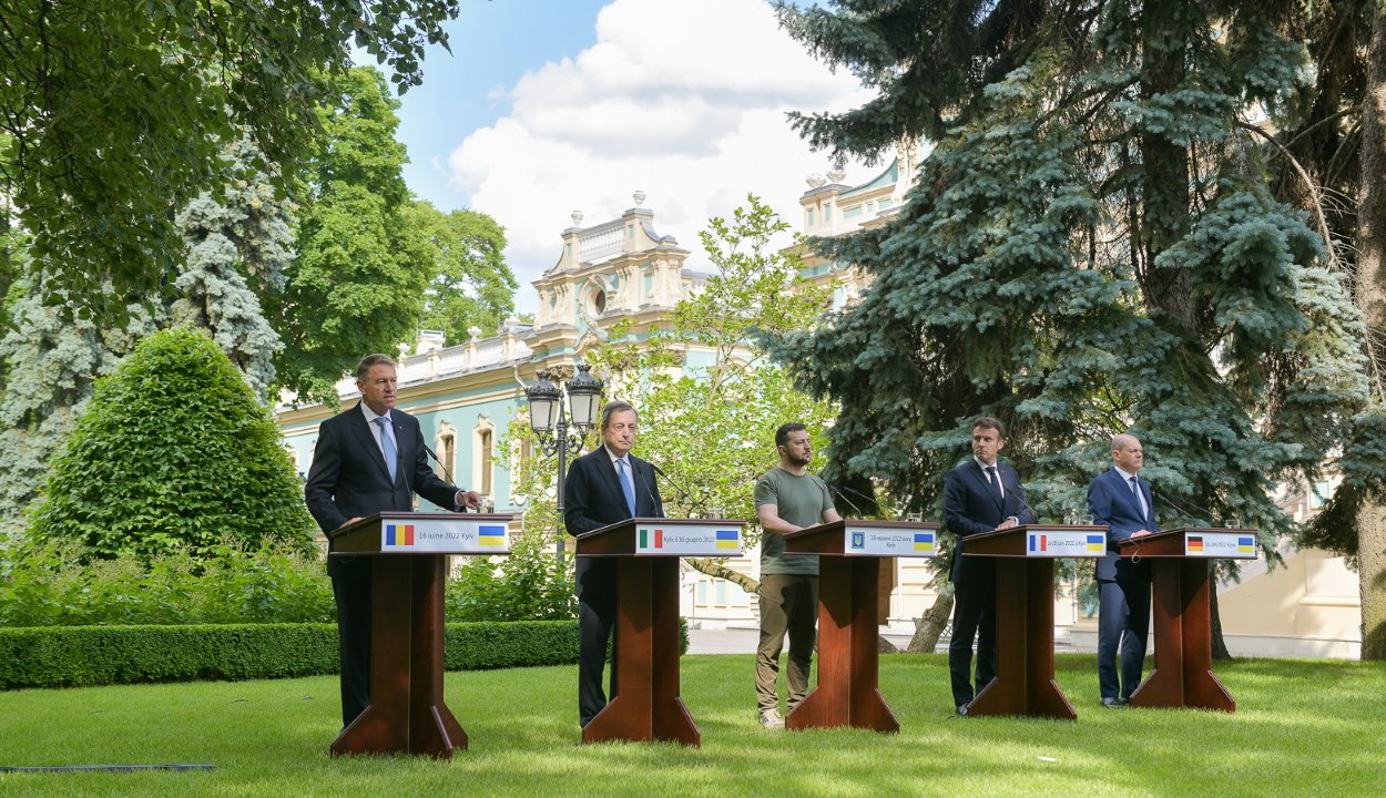 A román elnök közös sajtótájékoztatót tartott az ukrán fővárosban Volodimir Zelenszkij ukrán elnökkel, Emmanuel Macron francia államfővel, Olaf Scholz német kancellárral és Mario Draghi olasz kormányfővel.