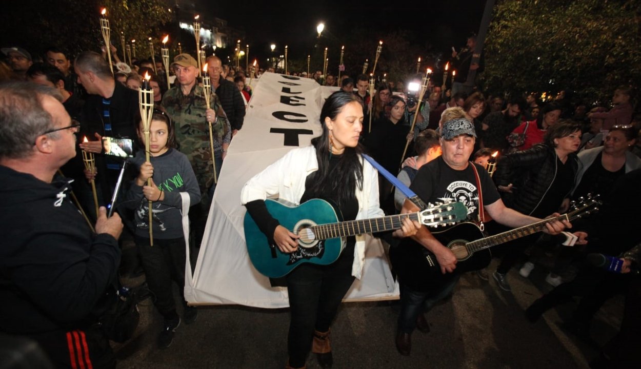 Az összegyűltek innen a Colectiv klub volt épületéhez vonultak, gitárzenével, gyertyákkal, fáklyákkal, így emlékezve a tűzvészben elhunyt 65 fiatalra.