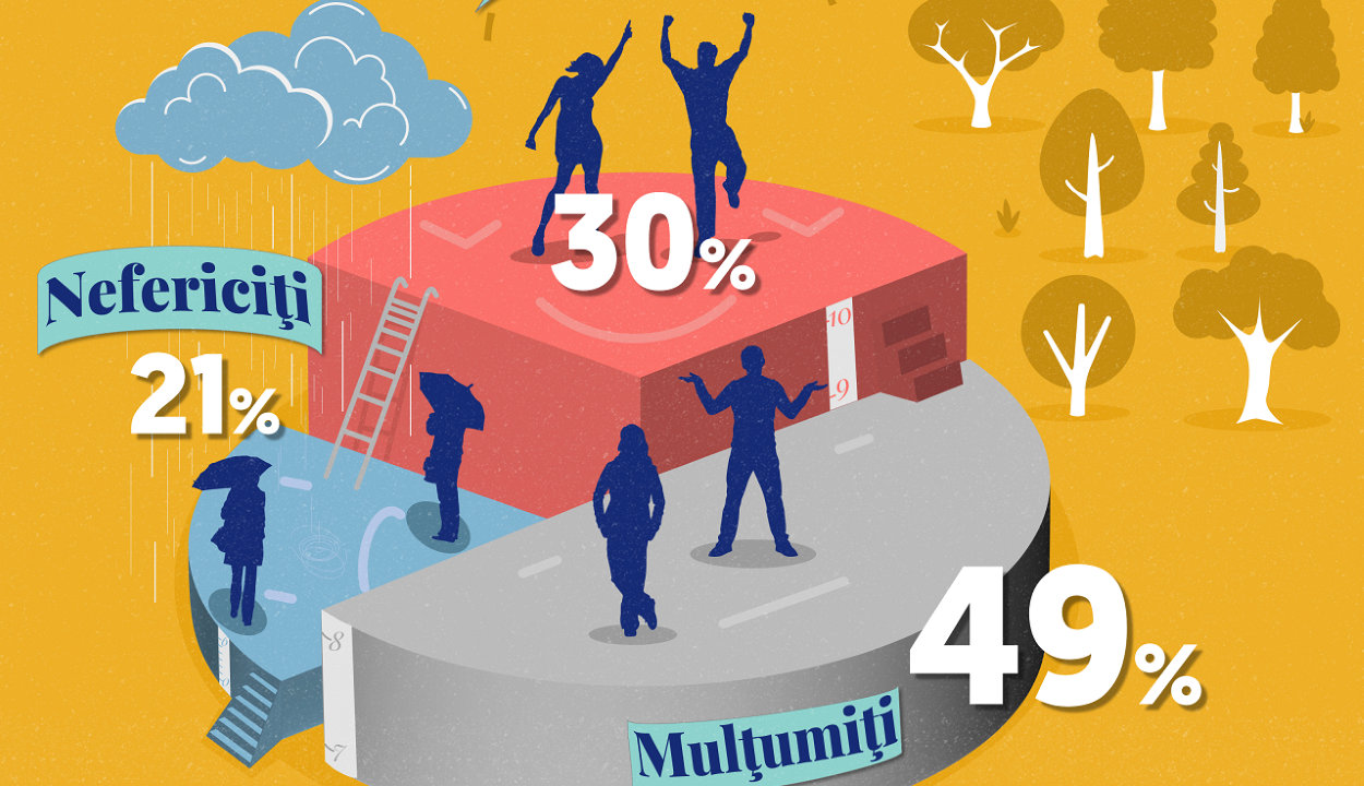 Románia lakosságának 30 százaléka boldog, 49 százaléka elégedett és 21 százaléka boldogtalan. Ez derül ki az IPSOS közvélemény-kutató intézet 2018 októberében végzett felméréséből.