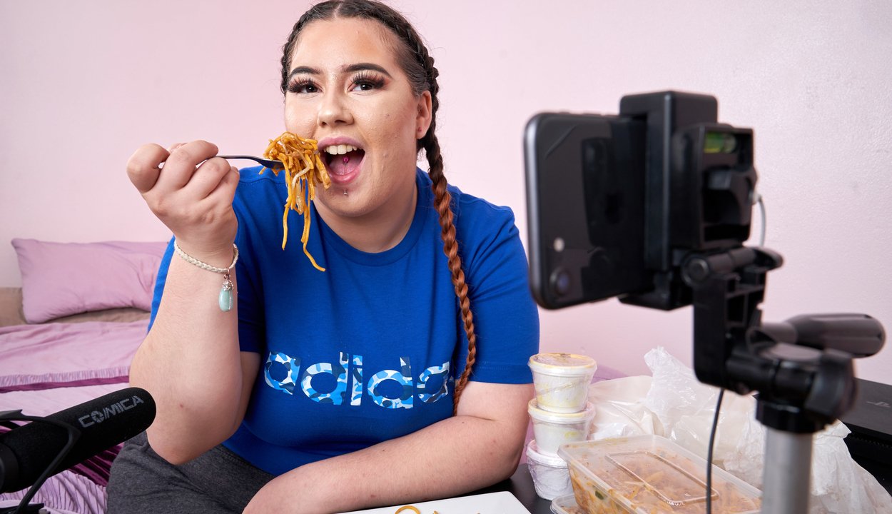 Charna ugyanis az Egyesült Királyság első mukbang sztárja. Na de mi is az a mukbang? A mukbang tulajdonképpen a zabálás közvetítése folyamatos kommentárokkal. A nő azt mondta, hogy bármit és bármennyit megeszik, amit a követői akarnak, legyen szó akár egy négytagú családnak elég kínai vacsoráról vagy éppen két extra nagy pizzáról. Állítása szerint heti kétszer áll bele a zabálásba.