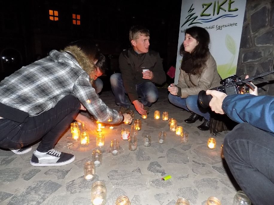 A szobor talapzatára a résztvevők gyertyákból kirakták az akciót jelképező 60-as számot, majd ezek meggyújtása után színes lampionokat eregettek a magasba, jó hangulatot kölcsönözve a rendezvénynek, amit mellékesen még Józsa Zalán gitárjátéka, és a felszolgált finom mentatea is fokozott.