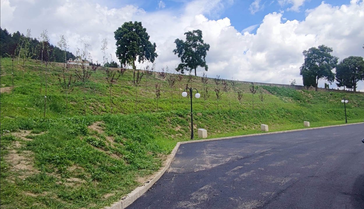 Már áprilisban megkezdték a munkafolyamatokat a kézdiszentléleki temető alatt, a paplak és a közösségi ház által határolt területen. A domboldalt teraszosították, oda ültették el május 7-én az előző évben születettek számára a facsemetéket. A múlt hét folyamán elkészül a domboldal alatti rész is, ahova parkolót képeztek ki.