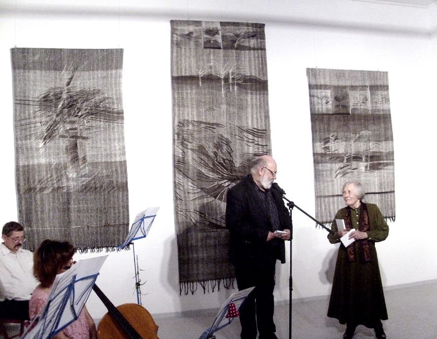 Az eseménytől kényszerűségből távol maradó Hegedűs Enikő művészettörténész ez alkalomra megfogalmazott gondolatait a szép számú közönséget intézményvezetőként köszöntő Vécsy Nagy Zoltán művészettörténész, a kiállítás kurátora olvasta fel. A szakember véleménye szerint Köllő Margit szövött munkái, valamint papírra rögzített műveinek formavilága és témái egyaránt összefonódnak, illetve egybeszövődnek saját életével, életterével, drámai vagy mindennapi helyzeteinek az átélésével.
