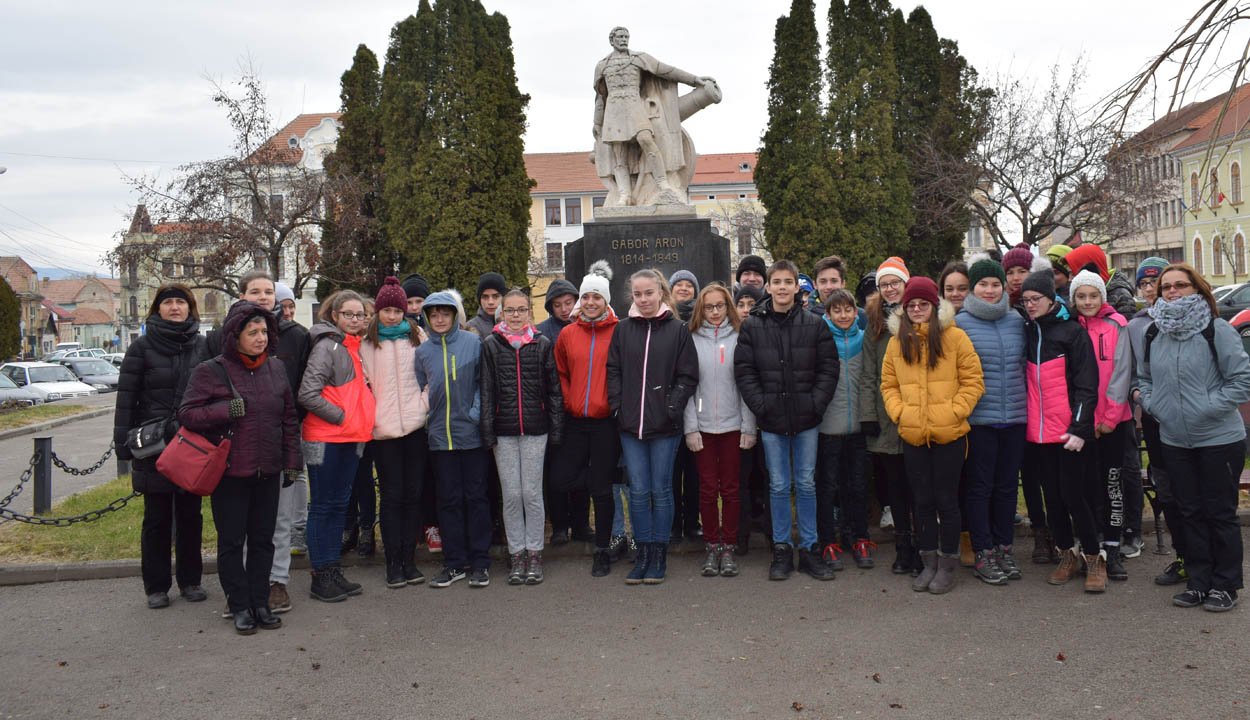 A Székely Mikó Kollégium VII. A osztálya már második alkalommal kapcsolódott be a programba. Ezelőtt két évvel Erdővidékre látogattunk el, most a célunk Felsőháromszék bebarangolása volt. Erre a kirándulásra iskolánk VII. C osztályával indultunk el az elmúlt hétvégén. A fagyos időjárástól való félelmünket legyőzte a kalandvágyunk, így korán reggel meleg ruhával felfegyverkezve indultunk el Gábor Áron nyomába.
