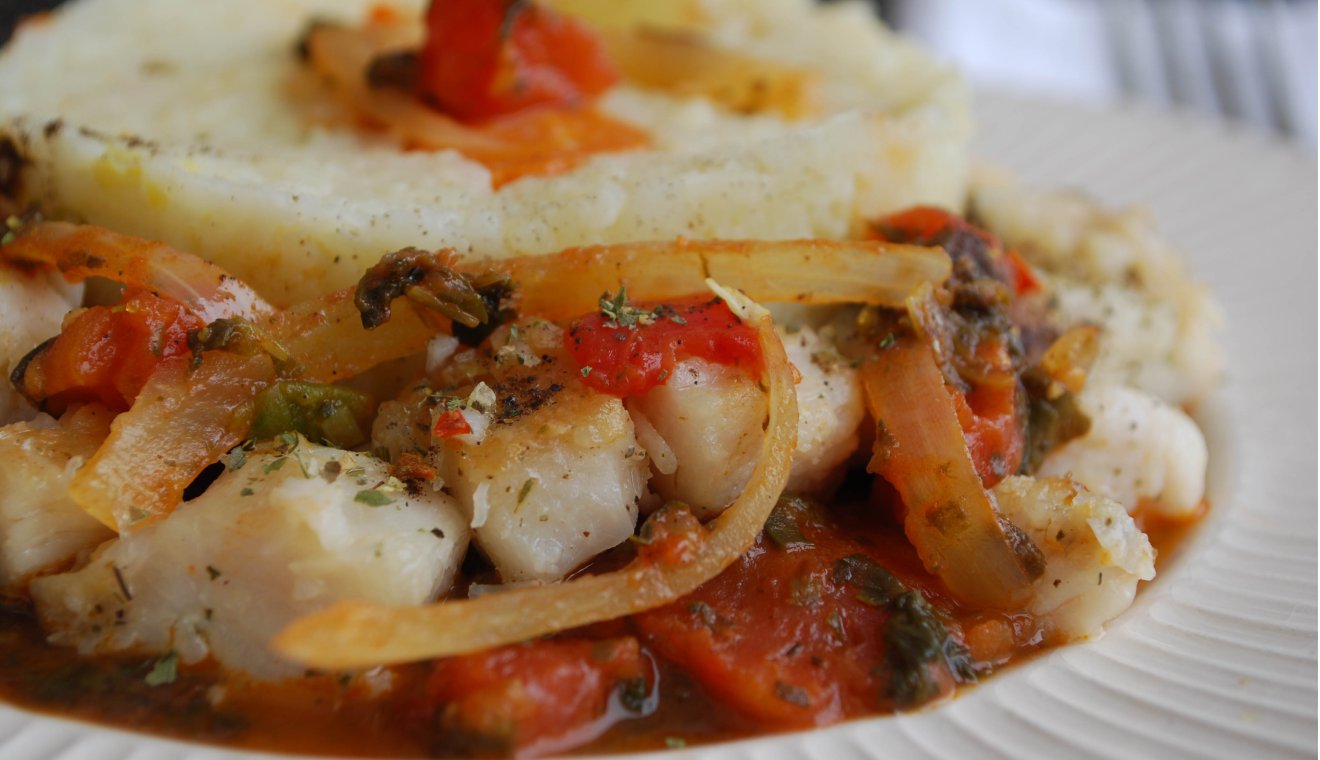 A tagine ételek lassan főzött pörköltek, amelyeket általában szeletelt húsból vagy halból, zöldségekkel, gyümölcsökkel készítenek. Fűszereket (citrom, koriander, gyömbér, római kömény, kurkuma, fahéj, sáfrány), dióféléket és szárított gyümölcsöket is használnak hozzá. Az édes és savanyú kombináció gyakori a tagine ételekben, például az aszalt szilvával és fűszerekkel készülő bárány-tagineban. Nálam most süllő került a hagyma, paradicsom, spenót mellé, a tányérra meg még rizs is.