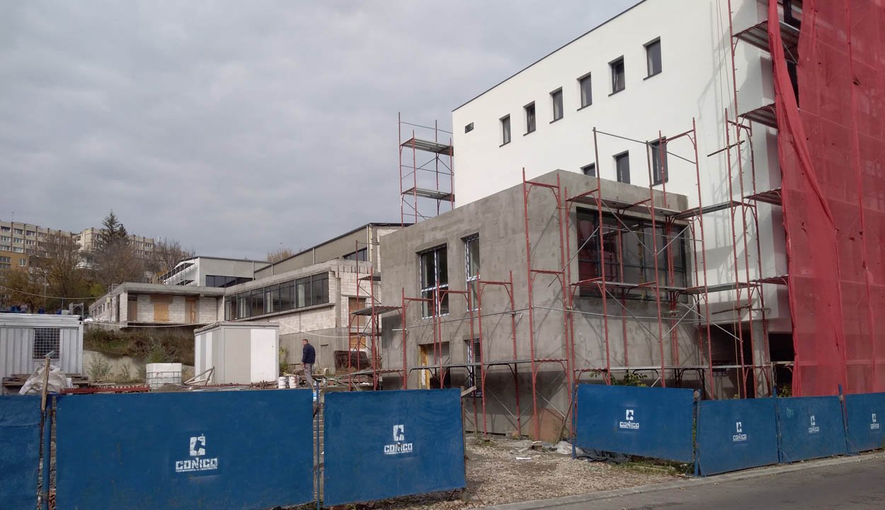 A főútról látható épültek esetében már a helyére került a legtöbb nyílászáró, folyamatban van a falak szigetelése és a villanyvezetékek bekötése. A két épületszárny közé tervezett, ötven férőhelyes mélygarázs pirosban elkészült, következik a föléje tervezett műfüves sportpályák kialakítása. Jól halad a terület hátsó részén lévő, versenyek rendezésére is alkalmas sportaréna építése. Ebben az esetben is már a helyükre kerültek az ajtók és az ablakok, a falak külső szigetelése a végéhez közeledik.