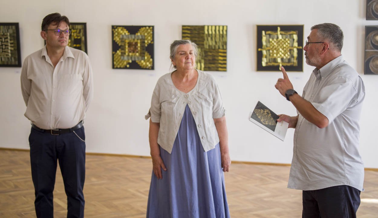 Pénteken délután nyitották meg Simó Enikő díszítőművészeti kiállítását az Incze László Céhtörténeti Múzeumban. A textilművész munkáival a kézdivásárhelyiek már találkozhattak a márciusi és az Incitato tábor közös kiállításaiban, ez az első alkalom azonban, hogy egyéni tárlattal érkezett a céhes városba. Munkáit és művészetét dr. Deák Loránd méltatta, aki szerint Simó művészete a manuális részecskék elrendezésével és a köztük létrehozott kombinációk lehetőségeivel bölcseleti gondolatokat vitt létre. „Az ismétlődő elemek állandó változása törvényszerű harmóniában áll össze, és azt hiszem, Enikő akkor zár le egy képet, amikor érzékeli, hogy ez a harmónia a tetőfokán van. Munkamódszerére a textilművész szövőszéke előtt lassított meditáló és a grafikusművész virtuóz gyorsasága egyszerre jellemző” – fejtette ki dr. Deák. Amint Dimény Attila múzeumigazgató felhívta a figyelmet, a tárlat egészen szeptember 25-ig megtekinthető.