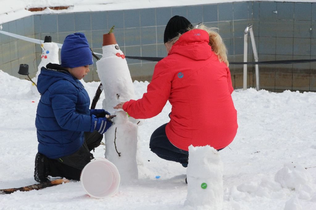 Hó, az viszont lehetett volna több is. A kicsiknek szervezett hóemberépítő versenyhez eleve műanyagvedreket is adtak a szervezők. A problémát ugyanis nem annyira a „hogyan” képezte, hanem az, hogy miből építs hóembert. Végül a szorgalmas apróságok összeraktak vagy húszat, legtöbbjük a fél méter magasságot sem érte el, de az adott körülmények között teljesítményük legalább azzal ér fel, mint amikor 2011-ben 118 hóember sorakozott a sípálya tövében.