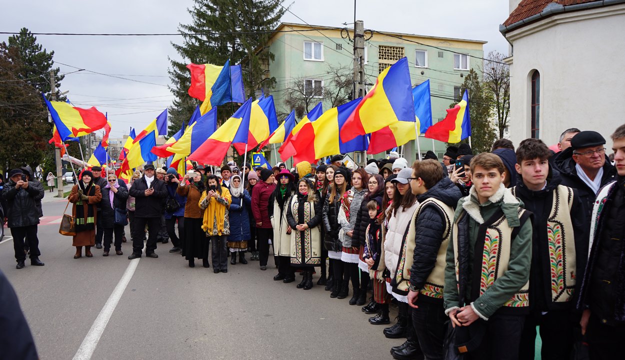A koszorúzással véget érő mozzanat után mintegy kétszáz személy vonult fel a városon a Tîrnoveanu által előzetesen megjelölt útvonalon, így a Molnár Józsiás, Dózsa György és Petőfi Sándor utcákon, jóllehet a Molnár Józsiás és a Béke utcában voltak a román trikolórok kihelyezve, illetve a kezdeményezőket is értesítették az útvonalról.