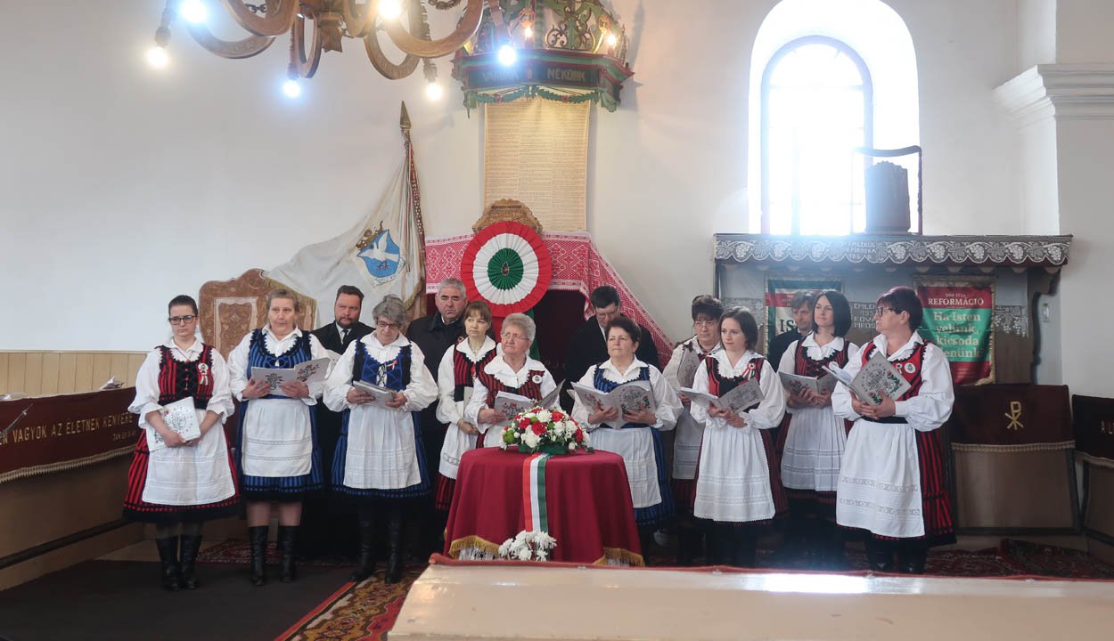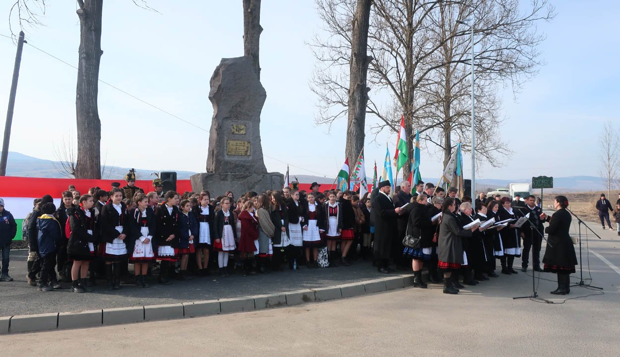 A véczeri emlékezők. A fotón a Nagy Adél tiszteletes vezette dalárda, és a baróti Gaál Mózes-iskola Gyöngyharmat kórusa látható. Utóbbiak Aczél Zsuzsanna vezetésével daloltak, énekeltek az ünnepségen. Véczer idei üzenete: Isten, óvd meg a magyart! – ezekkel a szavakkal zárta ünnepi beszédét Benedek-Huszár János polgármester.