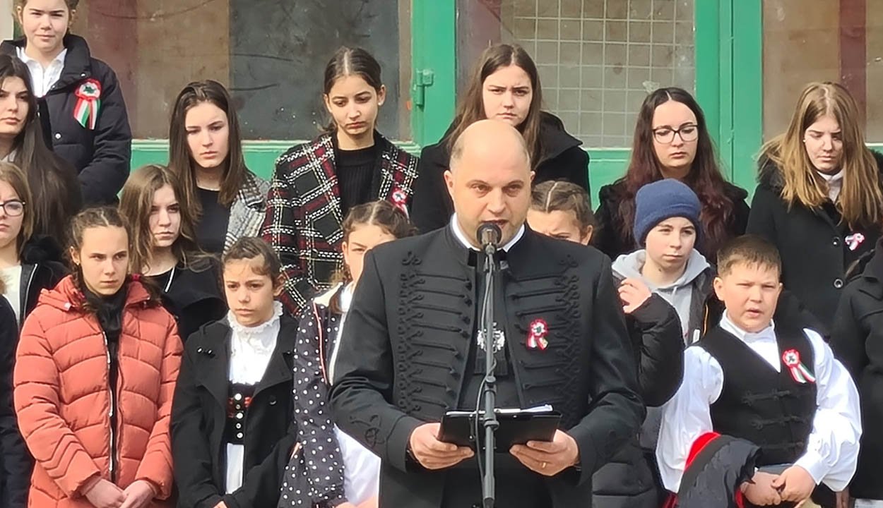 Baróti diákok emlékeznek a város központjában, Baikó Lajos honvédtiszt emlékművénél. Ünnepi beszédet itt Derzsi-Ráduly Kázmér, a Baróti Szabó Dávid Líceum igazgatója mondott, arra figyelmeztetve, hogy ne csak március 15-én legyünk zászlóvivők, hanem kötelességeink lelkiismeretes vállalásával mutassunk példát emberségből, magyarságból a hétköznapokban is.