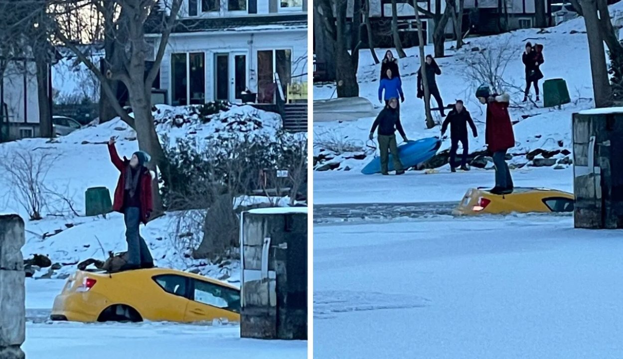 Az autó sofőrje ráhajtott a befagyott Rideau Riverre a kanadai főváros, Ottawa közelében, és ahogy az olykor megesik, a jég megadta magát a jármű alatt. Az esetet egy helyi lakos, Lynda Douglas Kurylowicz végignézte, és állítása szerint már akkor gondolta, hogy ebből baj lesz, amikor meglátta haladni az autót a jégen.