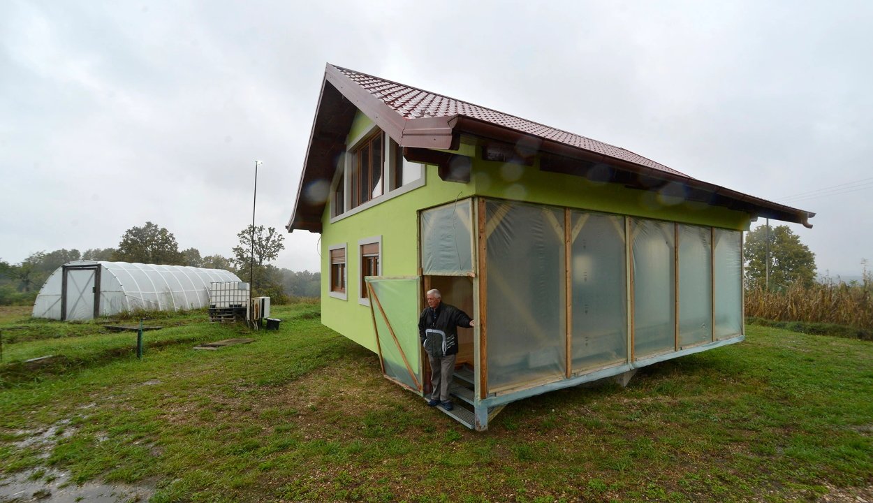„Ha a feleségem nemkívánatos vendégeket észlel a kapunk előtt, most már csak egyszerűen elfordítja a házat” – viccelődött az ötletgazda.
