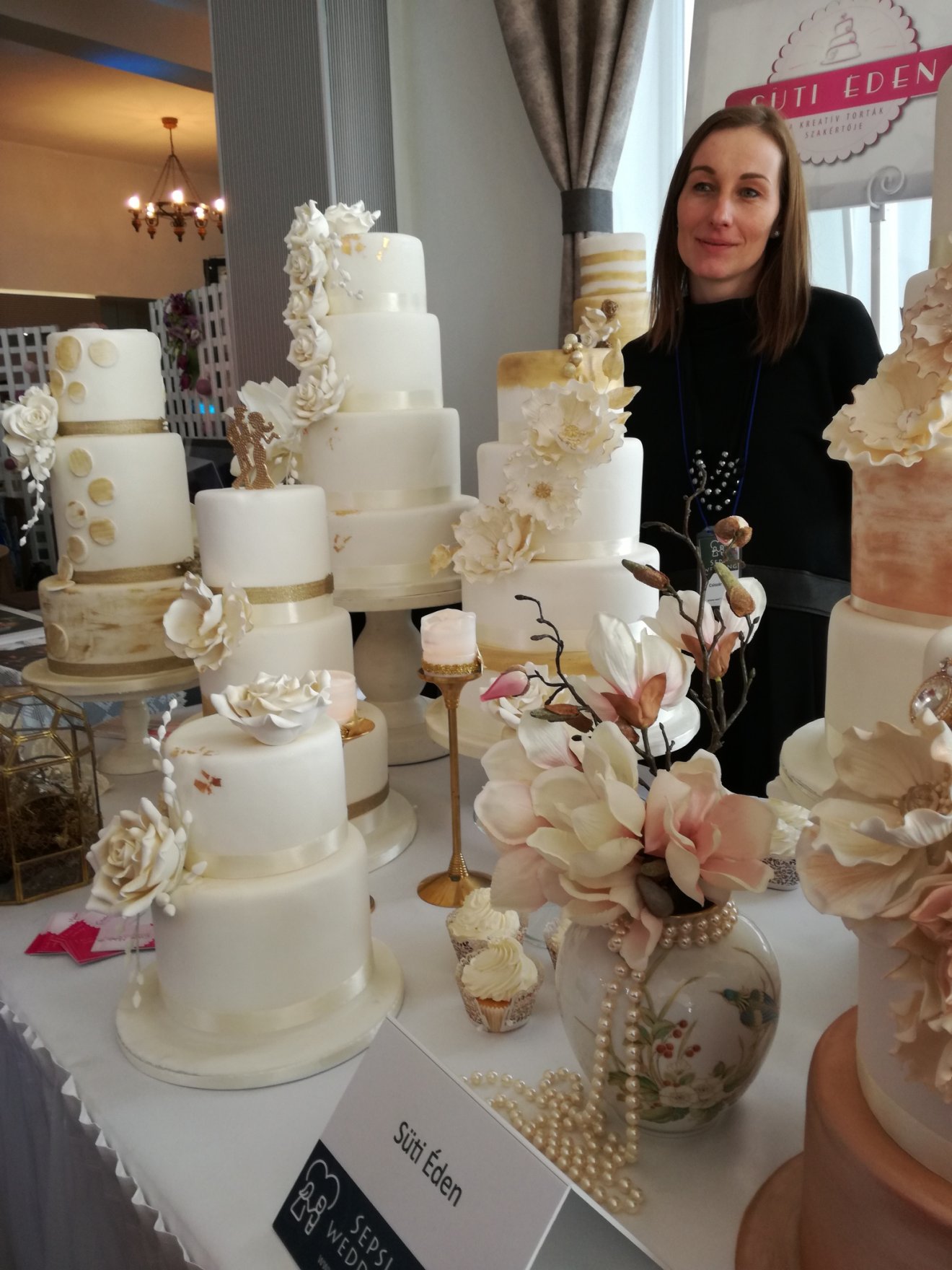 A szépen felújított Szent György palotában berendezett kiállításon is rendezvényhelyszínt, ceremóniamestert, fotóst, fodrászt, műkörmöst, teremdíszítést, tortakészítőt lehetett leszerződni, a meghívókat megrendelni, ékszert beszerezni, persze annak, aki nyugodtan szeretné várni a nagy napot. Egy leendő menyasszony a bordó menyasszonyi cipőjét kereste, mint Hamupipőke. Azért bordót, mert azt más alkalmakra is fel lehet venni, a költséghatékonyság és praktikum pedig az általunk megszólított majd mindegyik arának, párnak fontos szempontja volt.
