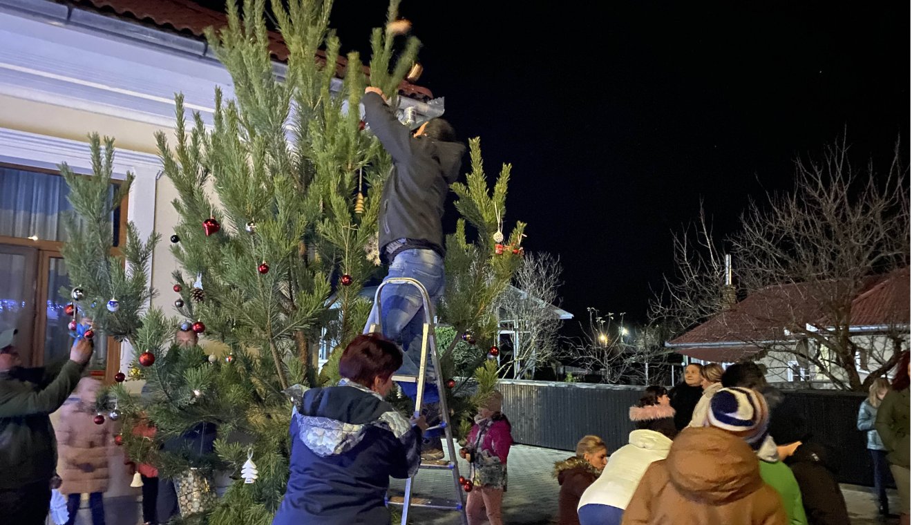 Az esemény kezdetén a polgármester és az alpolgármester köszöntötte az egybegyűlteket, beszéltek a hagyományteremtésről, a fiatalabb generációk bevonásáról, és hálájukat fejezték ki elsősorban a feleségeiknek, és mindenki másnak, akik segítettek a kultúrotthon előtti tér dekorációjának elkészítésében, ezután pedig egyszerre helyezték fel a fára az első gömböket, ezt követték a lakosok díszei.