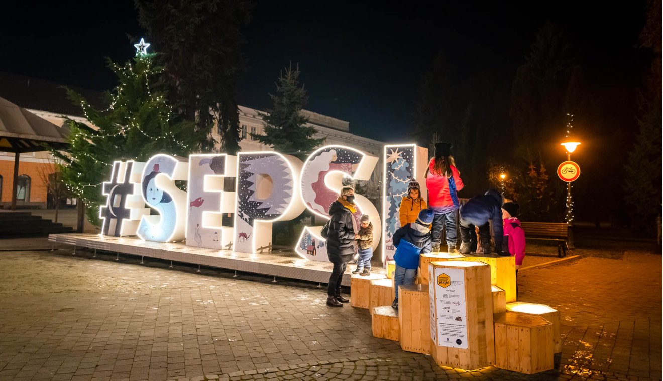 A #SEPSI óriásbetűk téli ruháját Szederjesi Szidónia és Fazakas Noémi tervezték, a Squid Design helyi vállalkozás vitelezte ki. Idén sem hiányozhat a tandemkerékpár, amely minden évben új helyszínen új megvilágításba helyezi a központ különböző tereit. A Vocalcycle helyi kerékpárműhely jóvoltából idén a #SEPSI betűkön és egy kis fenyőfán lehet fényeket gyújtani a közös tekeréssel.