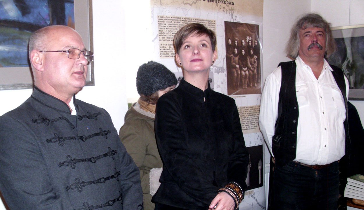 A továbbiakban az eseményen személyesen jelen lévő művész beszélt a kiállítás anyagáról. Ennek első képei egy Székelyudvarhely melletti alkotótáborban születtek meg, a többi pedig Kárpátalján és Felvidéken. Témájukat tekintve a munkatáborokban embertelen körülmények között sínylődő magyarok mindennapjainak egy-egy tragikus mozzanatát örökítik meg. Ezekről az alkotó, a szörnyűségeket átélt személyek elbeszéléseiből vagy a történteket megörökítő írásokból szerzett tudomást. A pasztellgrafikákon élet és halál mezsgyéjén bukdácsoló emberi alakok sejlenek fel a táborokban uralkodó viszonyok és létbizonytalanság megdöbbentő ábrázolásaként. Az áldott állapotban lévő nő megjelenítése, valamint a legkomorabb képekbe is belopott fehér csík azonban reményt is sugall a szenvedés szemlélésébe beleborzadt látogatónak. Mert amint a művész fogalmazott, „az élet mindig fontosabb, mint a halál.”