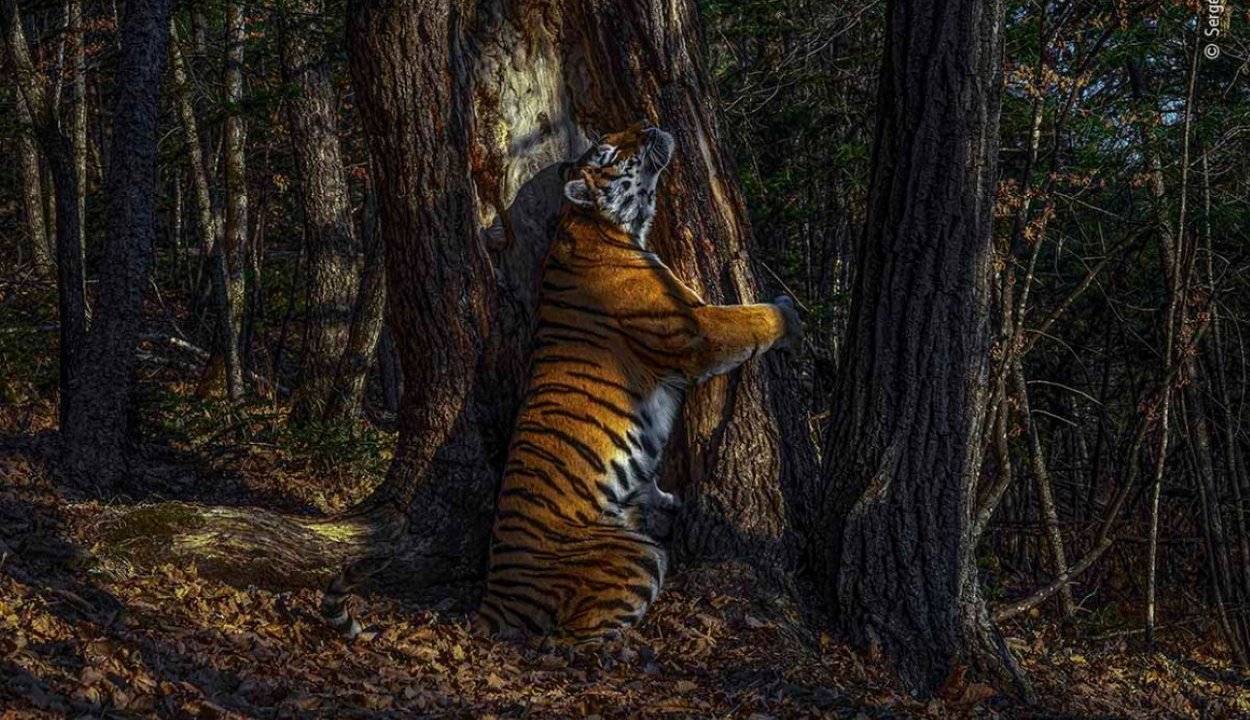 Szergej Gorskov orosz fotós egy fát átölelő szibériai tigrisről az Orosz Távol-Keleten készült felvétele nyerte el idén a londoni Természettudományi Múzeum Az év természetfotósa pályázatának fődíját.