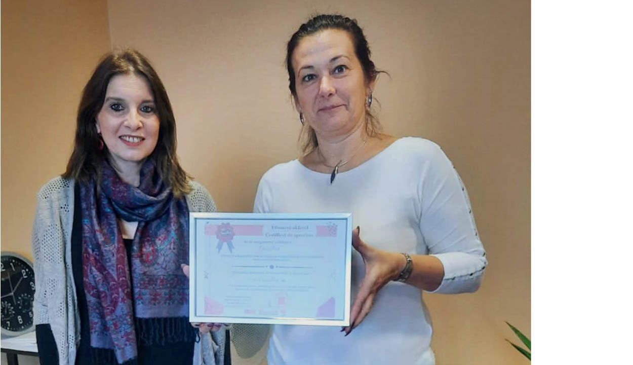 A szakmai felszólalások után Olcsvári Tünde pszichológus, az Írisz Ház igazgatója elismerő oklevéllel jutalmazta a Choco Pack csokoládégyár tulajdonosát, Héjja Andreát, aki négy fogyatékkal élő személynek biztosít munkát.