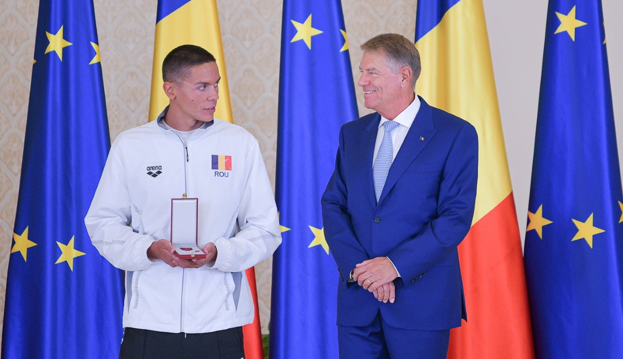 A Cotroceni-palotában tartott ünnepi rendezvényen az elnök a Románia Csillaga lovagi fokozatát adományozta David Popovici-nak, illetve az Érdemrend lovagi fokozatát Adrian Rădulescunak a budapesti, június 18-a és július 3-a között megrendezett úszó-világbajnokságon elért eredményeikért.