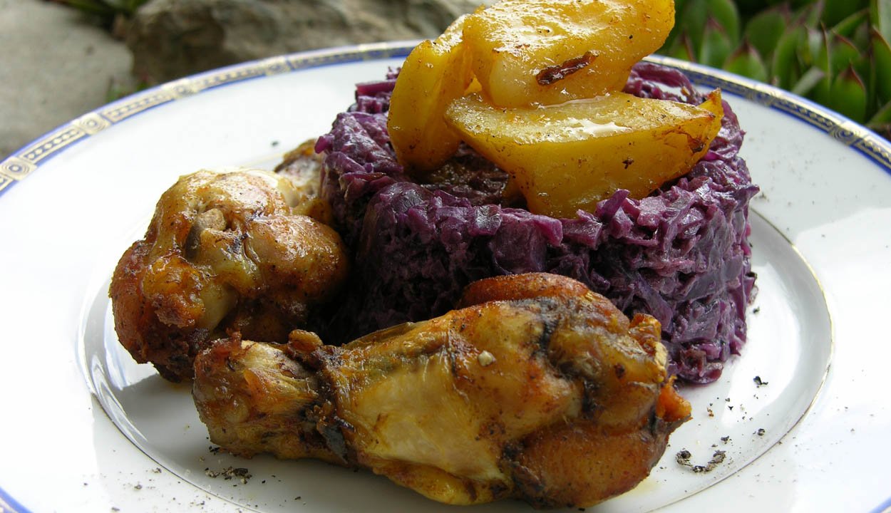 Habár e napon Mars isten szent madarát illik fogyasztani, jómagam idén megelégedtem egy kis gyenge csirke combjával, mely természetesen lila káposzta és sült krumpli társaságában került tányérra.