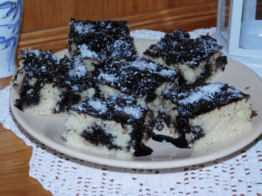 Hozzávalók: 35 dkg liszt, 10 dkg cukor, 2 tojás, 12 dkg margarin, 5 dkg kókuszreszelék, 1 csomag sütőpor, 2,5 dl tej, csipet só. A mázhoz: 20 dkg vaj, 15 dkg cukor, 5 dkg kakaó, 6 evőkanál tej, maréknyi kókuszreszelék a tetejére.