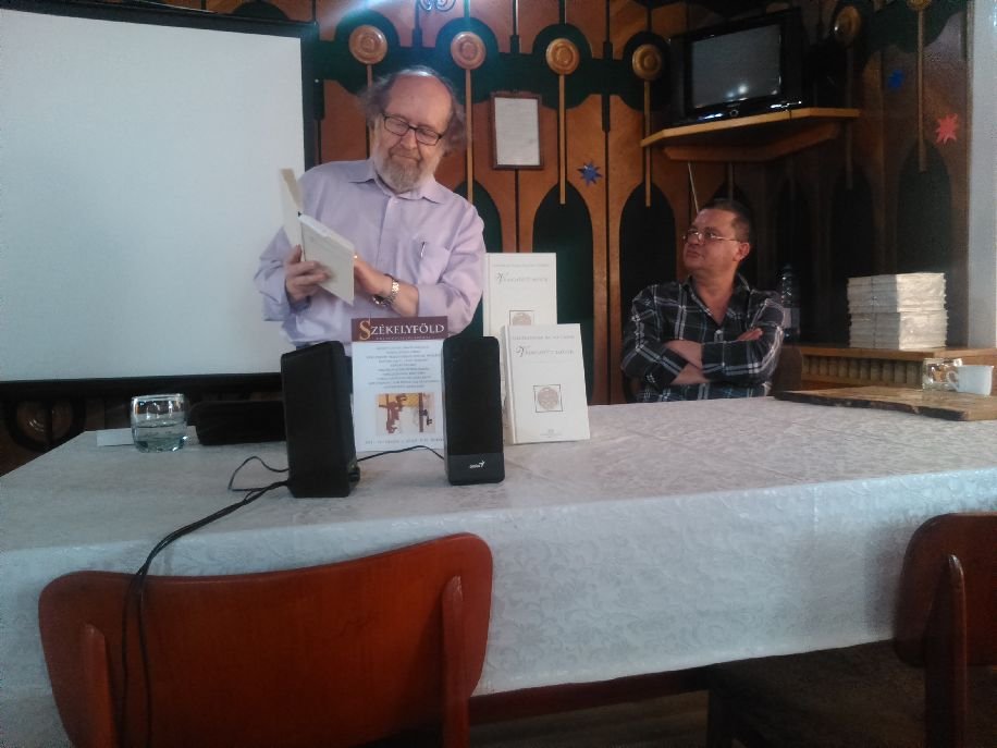 Mint minden évben, ezúttal is két díjat osztottak ki a képzőművészeknek. Az 1000 lejes Kőrösi Csoma Sándor-díjat a budapesti Ghyczy Csongor grafikus, míg a 2000 lejes Szentimrei Judit-díjat Péter Alpár bikfalvi képzőművész (képünkön balról) kapta. A folytatásban bemutatták a tavalyi tudományos konferencia anyagából született kötet, ami Kőrösi Csoma Sándor – Kötődések címet viseli.