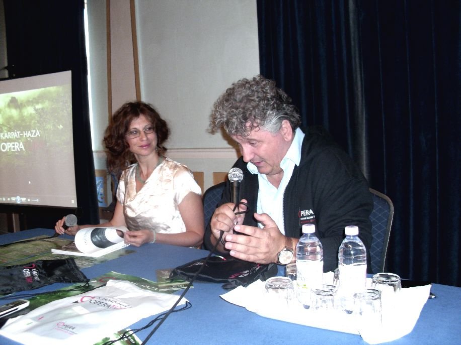 A Magyar Állami Operaház Sepsiszentgyörgyön kezdődő, Kárpát-Haza elnevezésű turnéjáról és az általuk bemutatásra kerülő előadásokról tartott tegnap sajtótájékoztatót Ókovács Szilveszter, az intézmény főigazgatója, és Szebeni Zsuzsa, a Balassi Intézet sepsiszentgyörgyi fiókjának igazgatója.