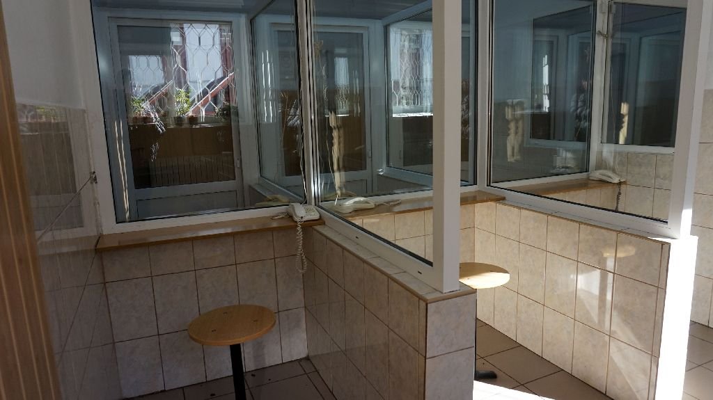 A látogatásunk végén a tárgyalóba is betekintettünk, de előzetes elképzelésünkkel ellentétben a két elítélttel nem kerültünk szemtől szembe, üvegfalon át, egy parányi szobában zajlott a kommunikáció. Aminek két oldalán van ugyan telefonkészülék, de picit emelkedettebb hangnemmel lehet anélkül is értekezni.