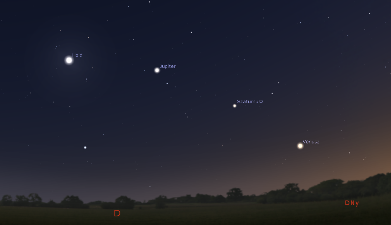 Látványos égi jelenség várható december 10-én, amikor egyszerre négy égitest: a Vénusz, a Szaturnusz, a Jupiter és a Hold együttálása figyelhető meg a téli égbolton.