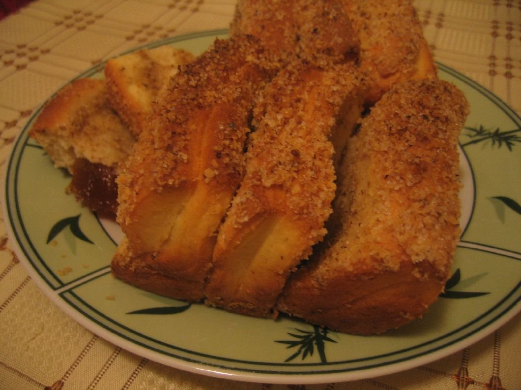 Hozzávalók: 1 kg liszt, 2 tojás, 20 dkg puha margarin, 4 ek+1 kk cukor, 1 csapott kk só, 4 dl tej, 4 dkg élesztő, citromhéj. A töltéshez és forgatáshoz: 2 kis üveg lekvár, 1 dl olaj, 15 dkg darált dió, 4 ek cukor, 2 vaníliás cukor.