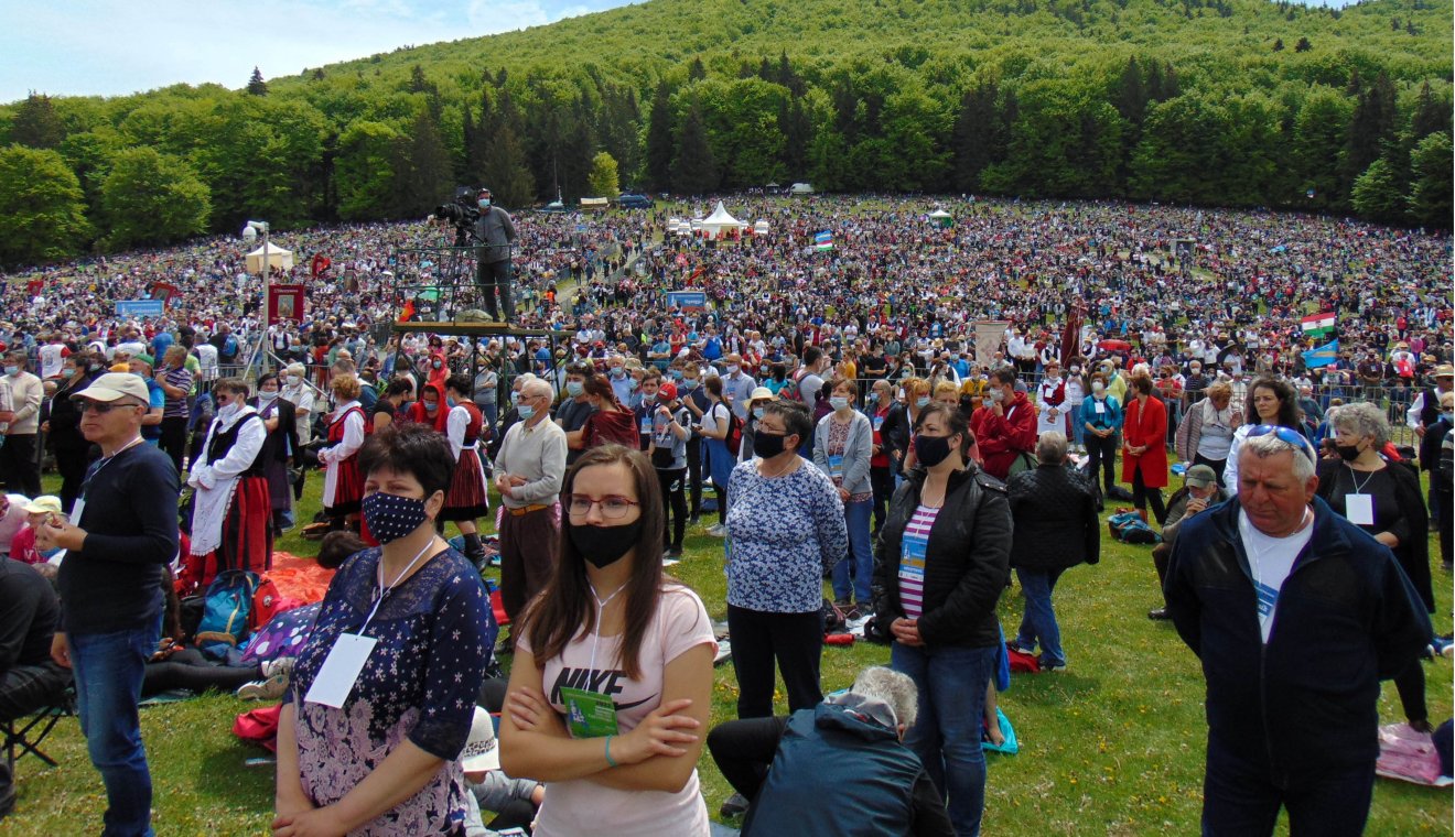 A járvány miatt a megszokottnál kisebb létszámban ugyan, viszont folyamatosan érkeztek a keresztalják a Kis- és Nagysomlyó tövében Isten iránti hálánkból megépített Hármashalom-oltárhoz. Így délre a tömeg, ha az előző alkalmakhoz képest foghíjason is, de egy év kényszerkihagyás után újra benépesítette az évszázadok során itt felszakadó fohászok és elmormolt imák által megszentelt hegyoldalakat.