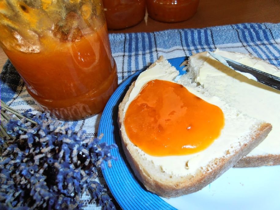 Lecukrozva állt 5-6 órányit, de általában másnapig szoktam hagyni. Kis lángon feltettem főni, belemorzsoltam 5 szál levendula virágait s beletettem egy egész citromot vékony karikákra szelve, a magokat gondosan kipiszkálva belőle.