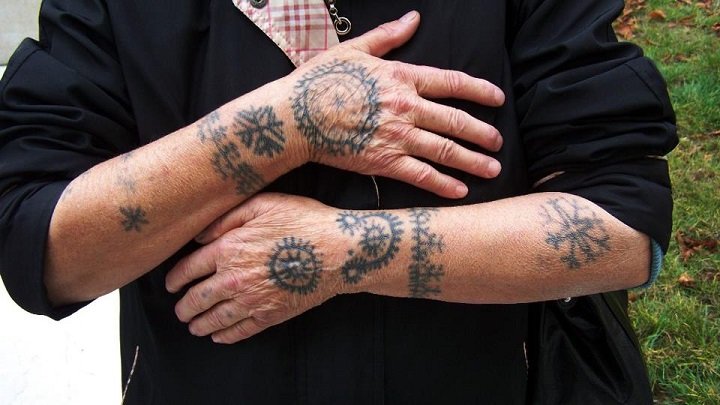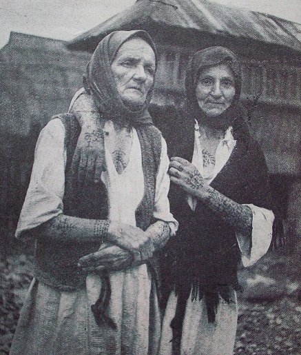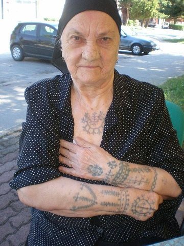 (Fotók: boszniai horvát katolikus asszonyok hagyományos tetoválása)