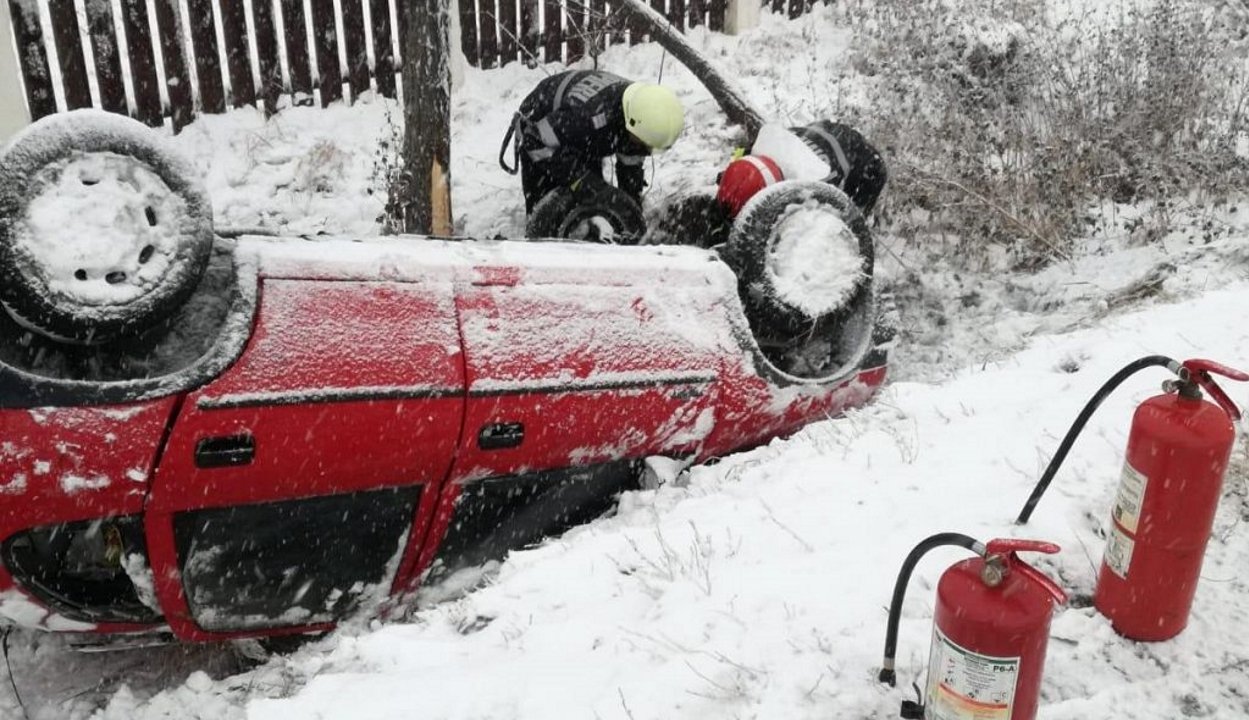 Árokba borult egy személyautó a DN12 jelzésű úton Sepsiszentgyörgy Kilyén felőli kijáratánál.