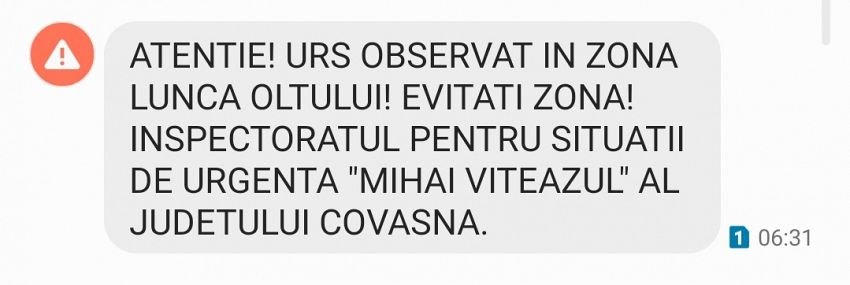 Szerda reggel a RO-ALERT rendszeren keresztül küldött figyelmeztetést a Kovászna megyei katasztrófavédelmi felügyelőség, hogy medvét láttak az Oltmező utcában, felhívva a lakosság figyelmét, hogy kerülje el a környéket.