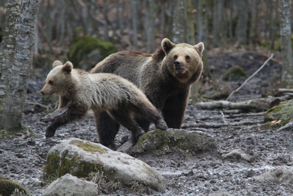 Delet épp csak elütötte az óra, de már kint voltunk a lesben. Több órai csendes várakozás után megjelent az első medve egy boccsal. Nagyon óvatosan viselkedtek, magasra emelte orrát, száját kissé kitátva vette a levegőt, elemezte a szagmintákat, felénk nézett, nem látott, de kiszagolhatott az anyamedve, mert úgy döntött, hogy továbbáll. Naplementéig még öt medve érkezett. A medvemegfigyelő napon az utolsó medvét a faluhoz közeli mezőben láttuk, és ezzel egy eredményes napot zártunk