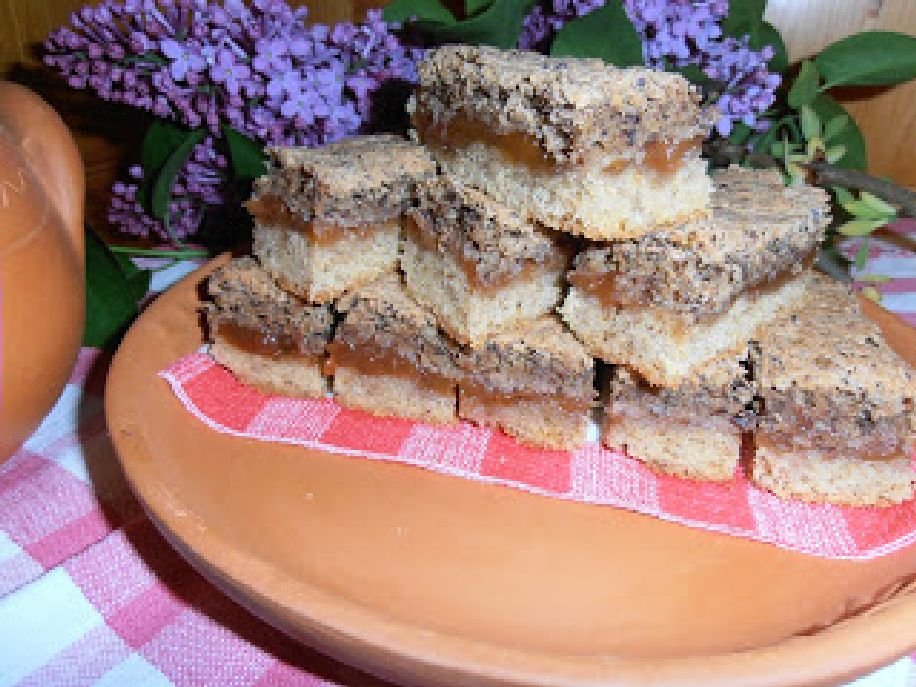 Hozzávalók a tésztához: 30 dkg liszt, 10 dkg porcukor, 1 csomag sütőpor, 4 tojássárgája, 10 dkg darált dió, 15 dkg zsír. A töltelékhez: 1 üveg lekvár, 6 tojásfehérje (volt 2 maradék), csipet só, 20 dkg cukor, 25 dkg darált dió, 10 dkg étcsokoládé.