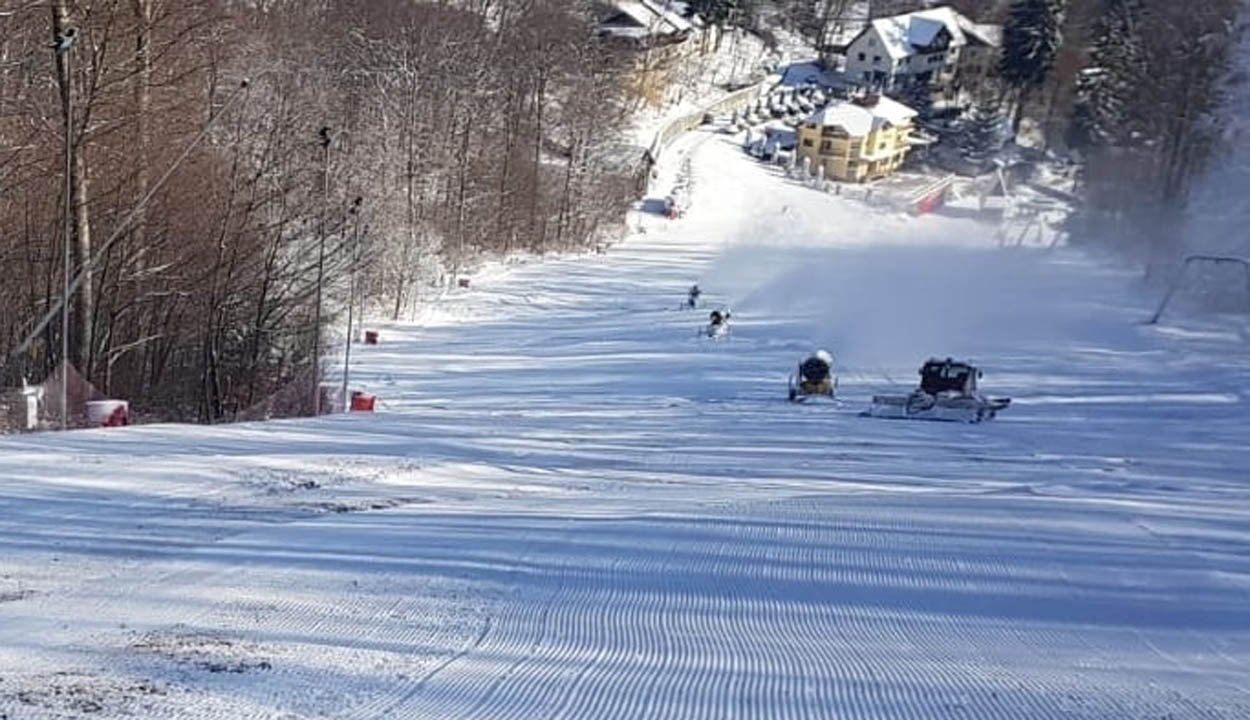 Befújták hóval a sugásfürdői nagy sípályát, ma reggeltől ismét lehet sízni.