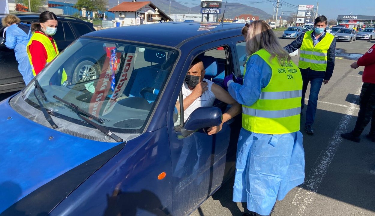 Szombaton megnyitották Déván az ország első autós oltásközpontját, ahol a koronavírus elleni vakcinát előjegyzés nélkül megkaphatják az igénylők.