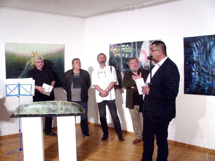 A személyesen is jelen lévő művészeket: Damó István (Nagyszeben, 1951) festő-grafikust, Lakatos Pál (Kispeleske, 1960) szobrászt és Szilágyi-Varga Zoltán (Kékes, 1951) grafikust ifj. Gyergyádesz László művészettörténész, a Kecskeméti Katona József Múzeum Képzőművészeti Gyűjteményének vezetője mutatta be a nagyérdeműnek. Nem véletlenül, hanem sajátos jellege miatt választották éppen ezt a várost alkotó munkájuk színhelyéül, a kultúrateremtésnek ugyanis itt hagyományai vannak. A századfordulón például Nagybánya, Szolnok és Gödöllő mellett egyike volt a művésztelep-teremtő mozgalomnak, ráadásul maga kezdeményezte ennek létrehozását, és vállalta a feltételek megteremtését is.