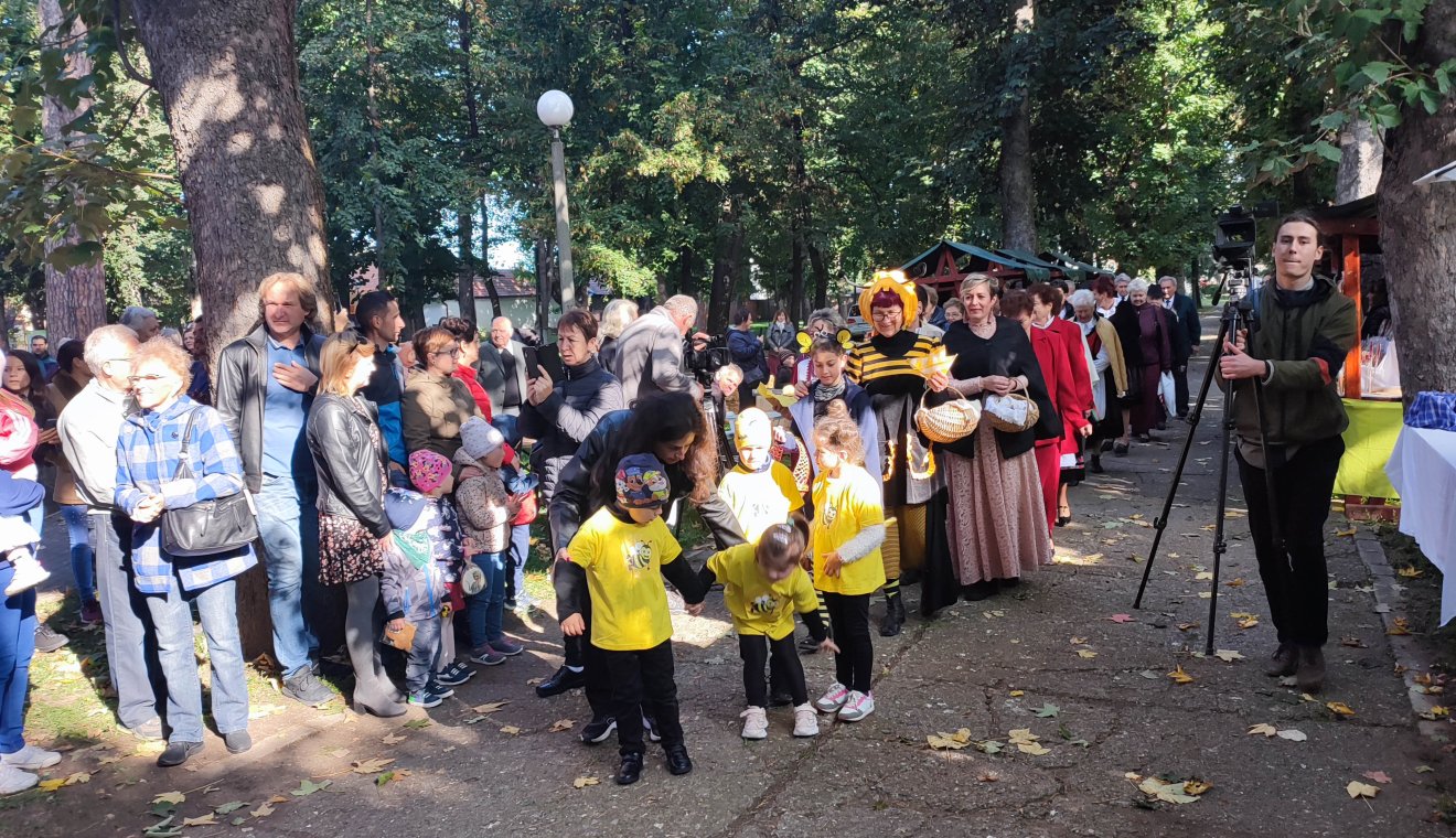 Az időjárás a szervezőkkel volt, a vetési varjak pedig ilyenkor a mezőn vannak, így mondhatni, minden kedvezett egy tökéletesnek mondható, családias rendezvény lebonyolításához, amihez a kézdivásárhelyi önkormányzat is hozzájárult. A parkban lévő filagória előtt a Gergely Tamás és Szóró Dorina által vezetett Felsőháromszéki Ifjúsági Fúvószenekar biztosította a zenei aláfestést, a fúvósok diktálta ritmusra díszes lobogókkal vonultak fel a csíkszéki, gyergyószéki, háromszéki és udvarhelyszéki mézlovagrend tagjai, a Maassluis Nyugdíjasklub, a Kézdivásárhelyi Nők Egyesülete, a Rák Ellen a Jövőért Egyesület, valamint a Benedek Elek Óvoda kis óvodásai méhecskéket ábrázoló öltözetben.