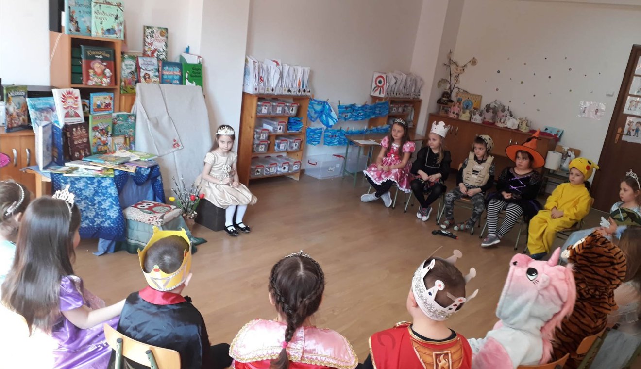 A családtagok az óvónők irányításával otthon is intenzívebben foglalkoztak a mesékkel, és egy délután igazi mesehősökké változtak egy általuk választott mese alapján. Az otthoni eszközökkel megvalósított mesejátékról fényképek, videó-felvételek készültek, amelyeket a szülők meg is osztottak a jól működő Facebook-csoportokban. Az óvodában a klasszikus mesék mellett sok kortárs mesével is találkoztak a gyerekek. Ezeket bemutatással, drámajátékkal, bábozással, illetve interaktív módszerekkel dolgoztuk fel, és rajzolással, festéssel, kézműves tevékenységgel, mozgásos ügyességi játékokkal egészítettük ki.