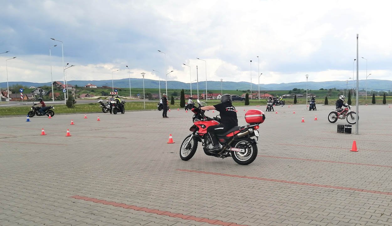 A tanulás és saját biztonságuk iránt elkötelezett motorosok azt is megteszik, tudtuk meg az oktatótól, hogy miután helyben (azaz saját településükön, városukban) elvégzik az alaptanfolyamot, alkalomadtán (ha tréninget szerveznek) elmennek a marosvásárhelyi tanintézeti pályára is – mert az egy nagyobb, összetettebb pálya, beépített akadályokkal, kiépített kanyarívekkel, vizesgödrökkel, lézeres sebességméréssel, tanterem is van.