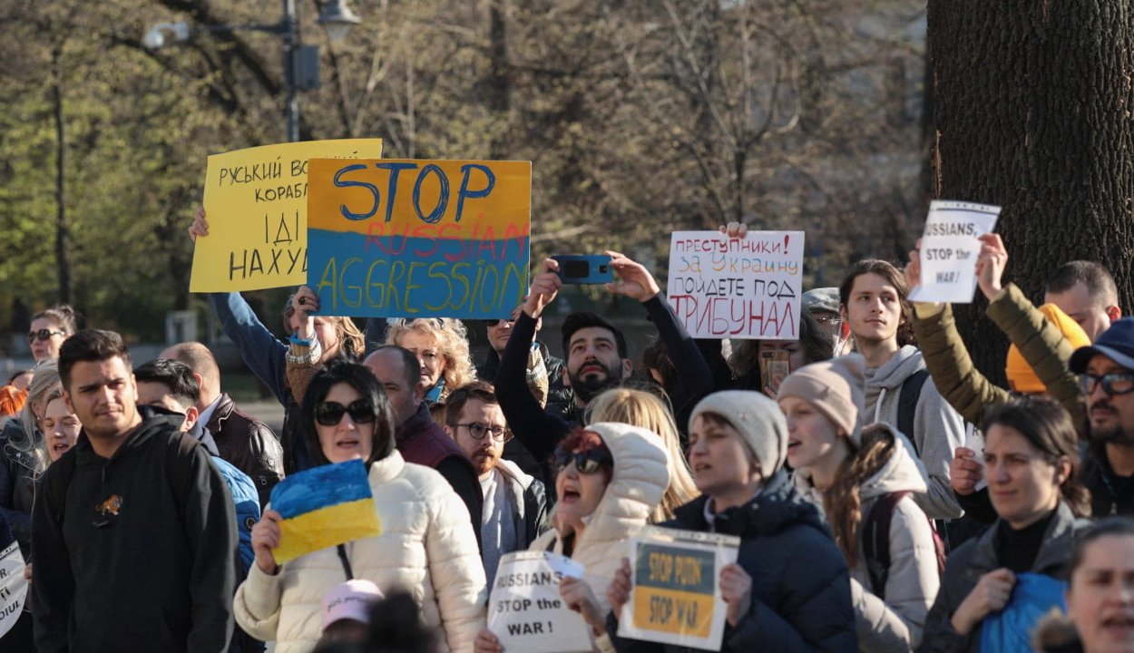 Mintegy száz személy tüntetett vasárnap az ukrajnai háború ellen a bukaresti orosz nagykövetség épülete előtt.