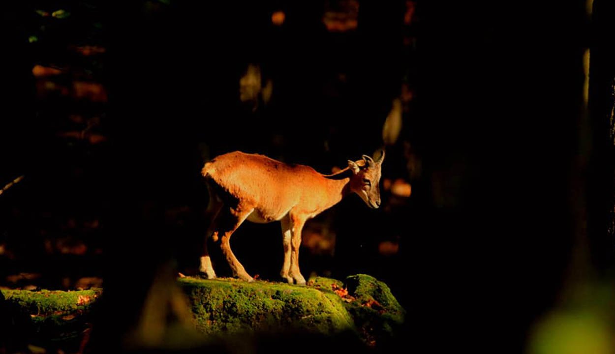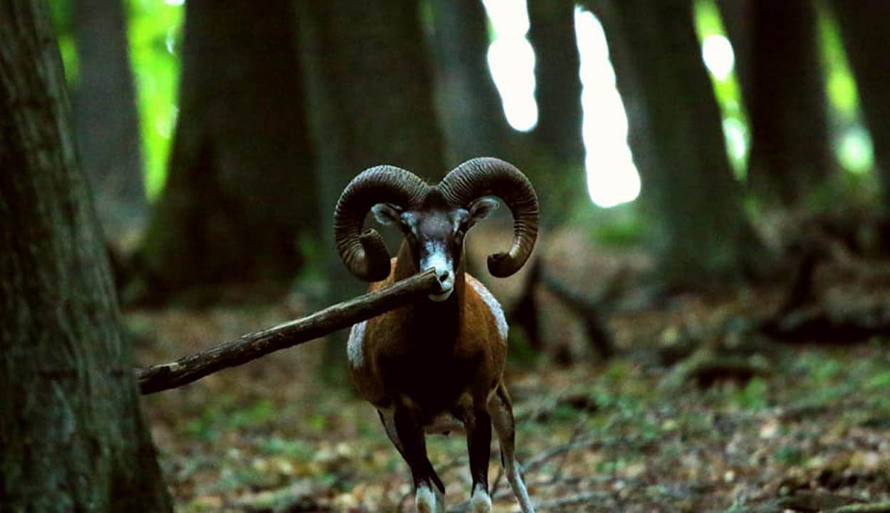 A bégetést és hangos koppanásokat követve derítettem ki a hang forrását, egy muflonnyáj volt, mely 20–25 főnyi bárányból, jerkéből és kisebb nagyobb kosokból tevődött össze – el is felejtettem, hogy ők is élnek itt. Ezek annyira beleolvadnak barnás színük miatt a környezetben, hogy alig látni őket, a kosokat fehér nyergük és a hangos koppanások árulják el, mely a nagy erővel összeütköző csigák hangja. Nem szívesen raknám be a kezem ütközés előtt a két koponya közé.