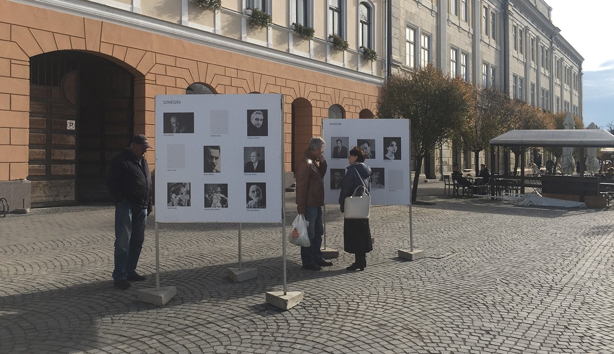 Csütörtökön egy zongora-performance mellett színészportrékból nyitottak szabadtéri kiállítást, amelyen egy hetvenéves össztársulat csoportképe rajzolódik ki, egy olyan közösségé, ami lélekben 1948 óta nem cserélődött, csak gyarapodott és színesedett.