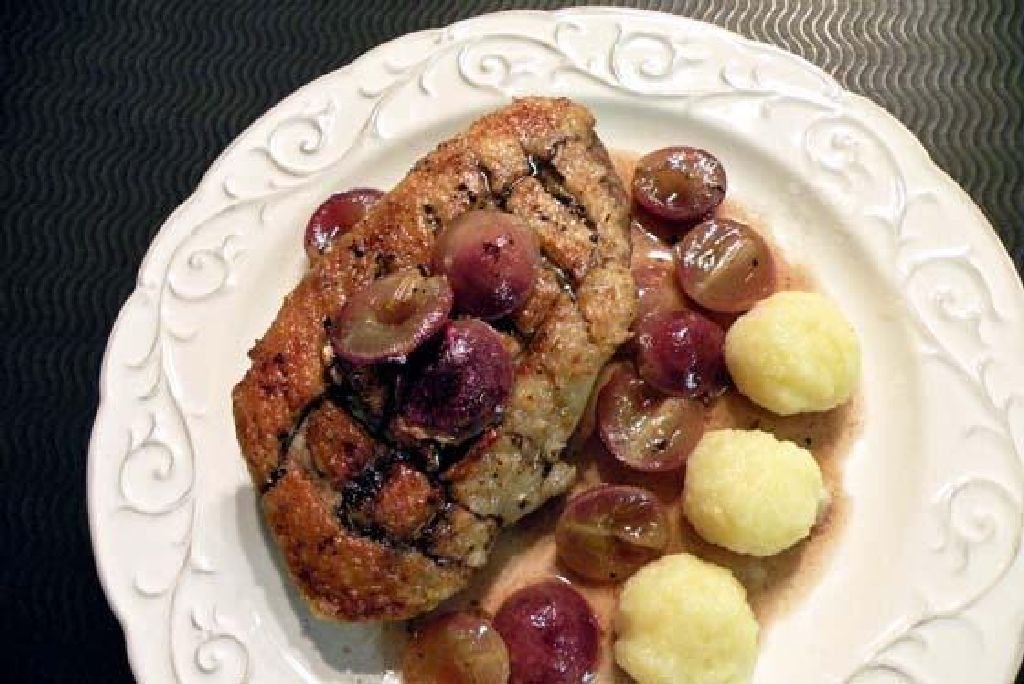 Elkészítése: a rizst enyhén sós vízben megfőzzük, leszűrjük, és jól lecsepegtetjük. Amikor kihűlt, hozzáadjuk a tojást, sóval, borssal, apróra vágott zöldpetrezselyemmel ízesítjük, és jól összekeverjük. Végül belekeverjük az előkészített szőlőszemeket. Az így nyert rizses-szőlős tölteléket a megsózott csirke belsejébe töltjük, majd a nyílást hústűvel lezárjuk, vagy bevarrjuk. A szárnyast kívülről is megsózzuk, tepsibe tesszük, forró olajjal leöntjük és középmeleg sütőbe toljuk. Amikor a csirke sülni kezd, ráöntjük a mustot, majd gyakori locsolgatással szép pirosra sütjük. Tálaláskor a csirkét feldaraboljuk, ízlésesen tálra rendezzük, rászűrjük a mustos pecsenyelevét és zöldpetrezselymes főtt burgonyával tálaljuk. (http://www.magyarvagyok.hu)