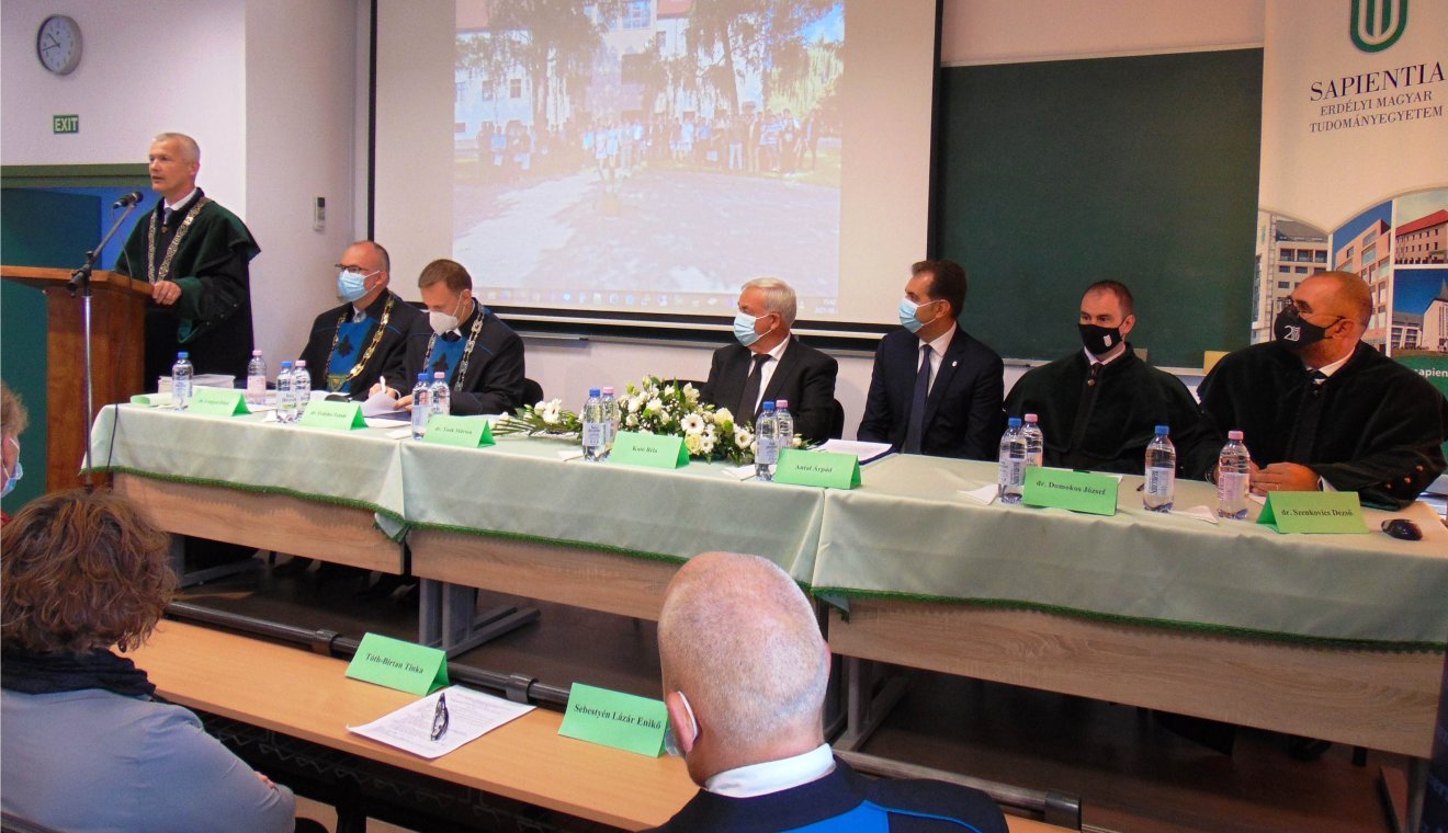 Dr. Szili Katalin miniszterelnöki megbízott, a Pécsi Tudományegyetem Kuratóriumának tagja személyesen nem lehetett jelen az ünnepségen, így videoüzenetben fejezte ki örömét és jókívánságait. Dr. Tonk Márton, a Sapientia EMTE rektora köszöntő és évnyitó beszédében a tanári, nevelői munka felelősségteljes végzésének fontosságára helyezte a hangsúlyt, hiszen ennek során nincs lehetőség utólagos helyreigazításra. Megállapította, az erdélyi magyar népesség folyamatos csökkenésének ellenére az általa vezetett intézményben az idén is ugyanannyi tanuló kezdi meg tanulmányait, mint az előző években.