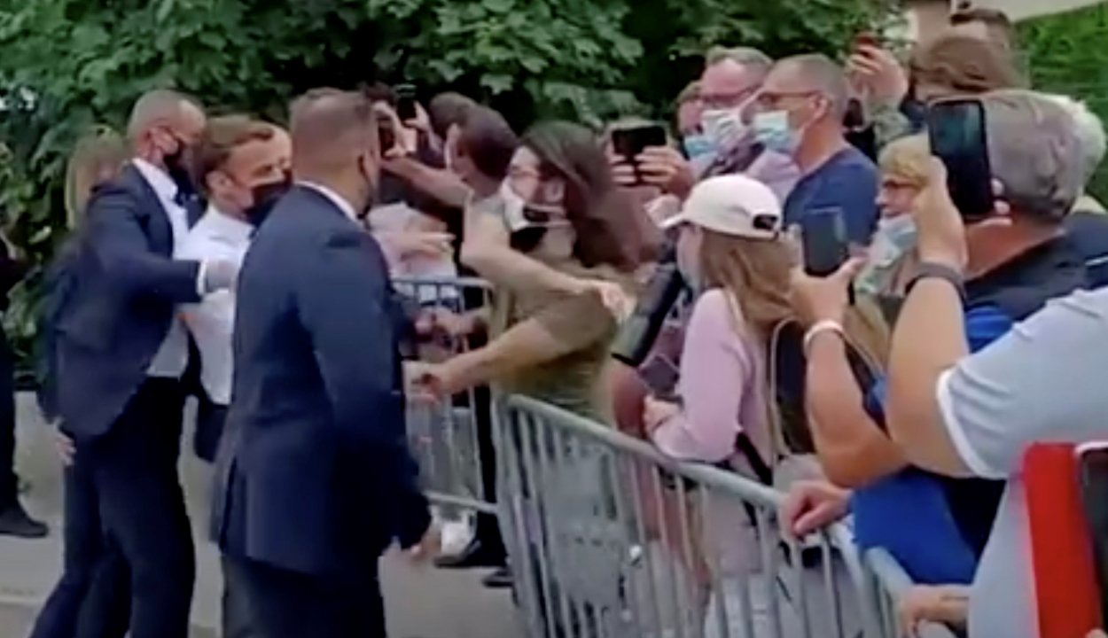 A pofon kedden csattant el az elnök Tain-l’Hermitage-ban tett látogatása során, az esetről felvétel is készült, amelyet megosztottak a közösségi oldalakon.